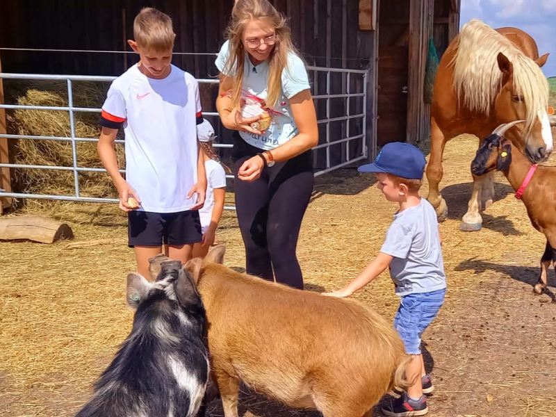 Ergänzt wird das Programm durch die Betreuung verschiedener Hoftiere, kreatives Gestalten, Natur- und Waldtage sowie ruhige Aktivitäten in der Natur. Das Camp findet bei jedem Wetter statt.